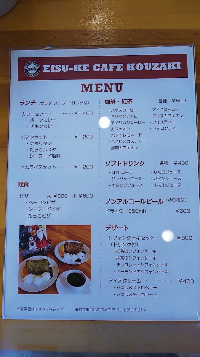 Introducing the menu of Eisu-ke Cafe Kouzaki, a delightful gem located in Kozaki, Chiba, where motorbike enthusiasts find a welcoming haven. This unique cafe is primarily biker-friendly, making it an ideal pit stop for those touring around Katori District.